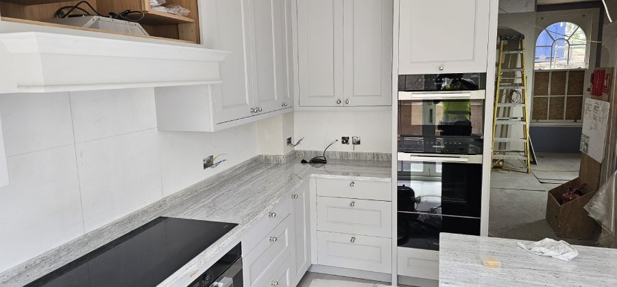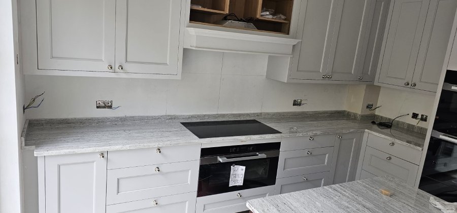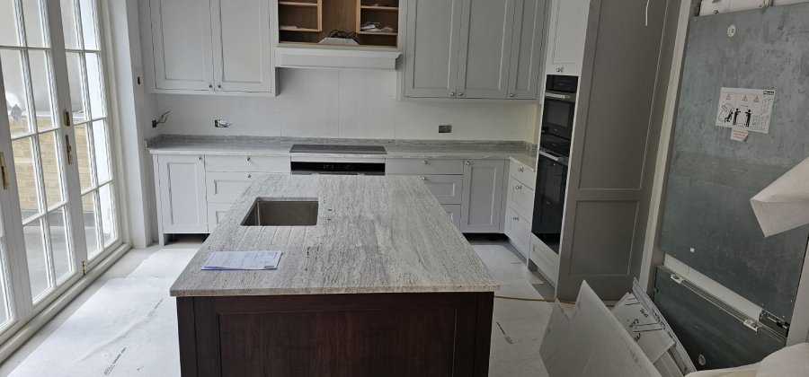 Roma Marble partnered with Mowlem Kitchens to deliver a contemporary domestic kitchen in London. As with every project, we delivered top-tier fabrication with precision cutting and polishing to enhance the granite’s natural beauty. Featuring neutral yet distinctive tones of 20 mm River White granite, the finished product achieved a refined and inviting aesthetic. Granite’s renowned durability means that, once sealed, it resists scratches, heat, and stains, making it perfect for busy kitchens.